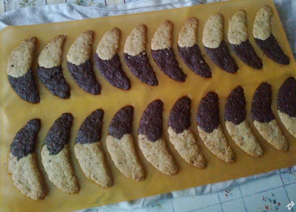 - Formičky vyskládáme na plech a vložíme do vyhřáté trouby, pečeme na 170´C asi 15 minut. Světlá část rohlíčku zezlátne.